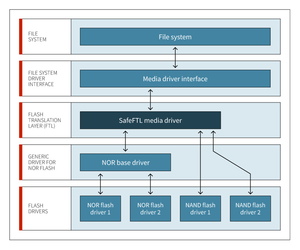File Systems Failsafe , FAT 16/32 , exFAT e SafeexFAT per embedded flash (NAND e NOR) e processori con flash on-chip, supportano diversi storage media (Compact Flash, SD / MMC / SDHC / high-speed SDXC cards, Disk Drives, RAM, Pen Drives, SSD Flash).