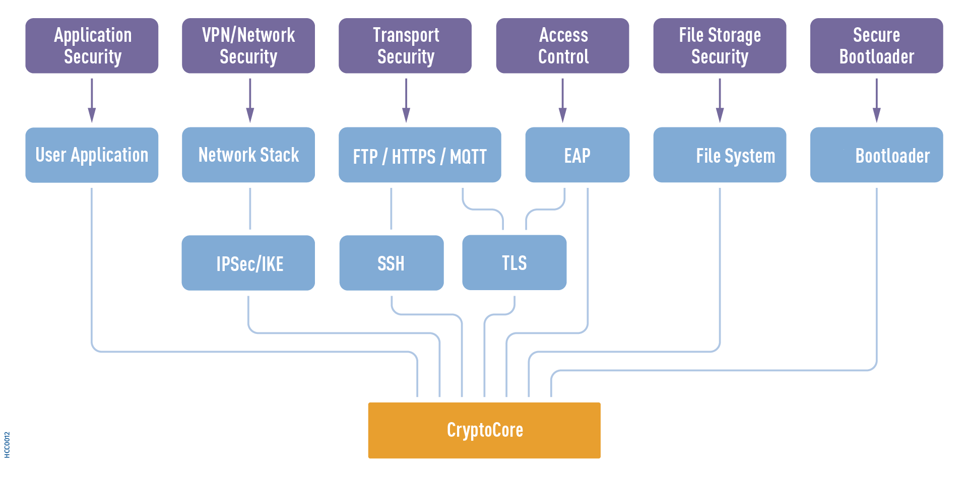 Il CRYPTO-Software consente agli sviluppatori di rendere più sicuri i sistemi embedded utilizzando diversi algoritmi di crittografia. Sviluppato rispettando lo standard MISRA-C, supporta i seguenti algoritmi: AES, Base64, DES, DSS, ECC, EDH, MD5, RSA, SHA, TDES, TIGER.